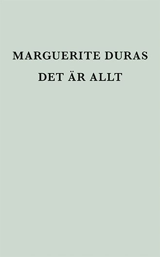Marguerite Duras dog den 3 mars 1996. Tre dagar tidigare hade hon avslutat sin sista bok, Det är allt, en dagbok som delvis tar formen av en dialog mellan Duras och Yann Andréa Steiner, hennes följeslagare i slutet av livet. Boken är ett sällsynt naket mänskligt dokument, en stram men intensiv reflektion över livet och författarskapet och en desperat protest mot döden. Texten har översatts och försetts med ett efterord av Kennet Klemets.